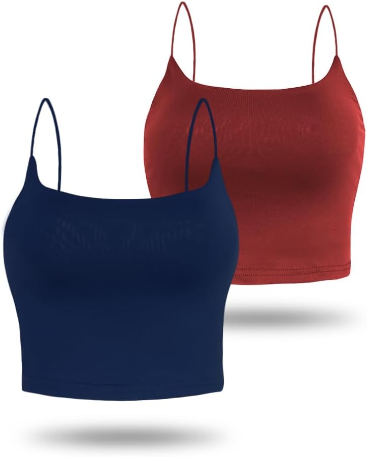 Amilia Women’s Basic Solid Cami Spaghetti Double Layer Crop Tank Top