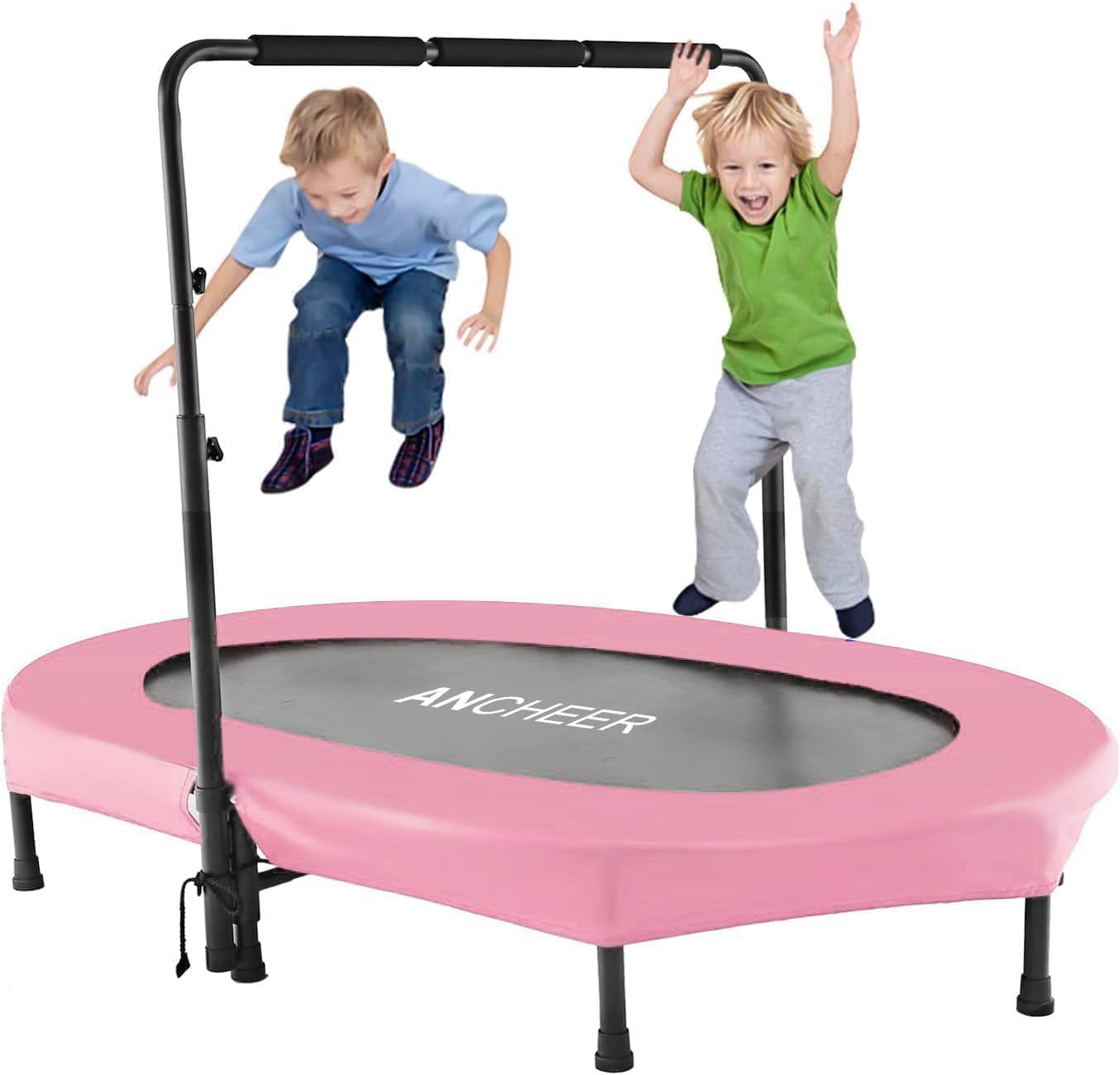 - 👍【Excellent Bouncing for 2 Kids】ANCHEER trampoline for kids features a sturdy Oxford cloth jumping mat surrounded by strong metal springs , providing excellent bounce. With a maximum weight capacity of 220 pounds, this 56”x36”rebounder trampoline accommodates two kids or a child and parent jumping together. The double kids trampoline encourages more interaction and strengthens emotional bonds with your child.