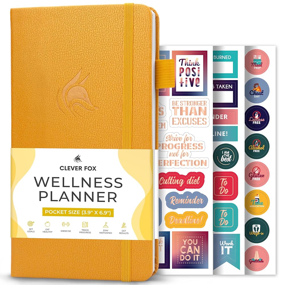 - PREMIUM QUALITY & STICKERS – Clever Fox health and fitness tracker planner has an eco-leather hardcover, thick 120gsm paper, lay-flat binding, pen loop, elastic, 3 bookmarks, pocket for notes, colorful stickers, and a detailed user guide.