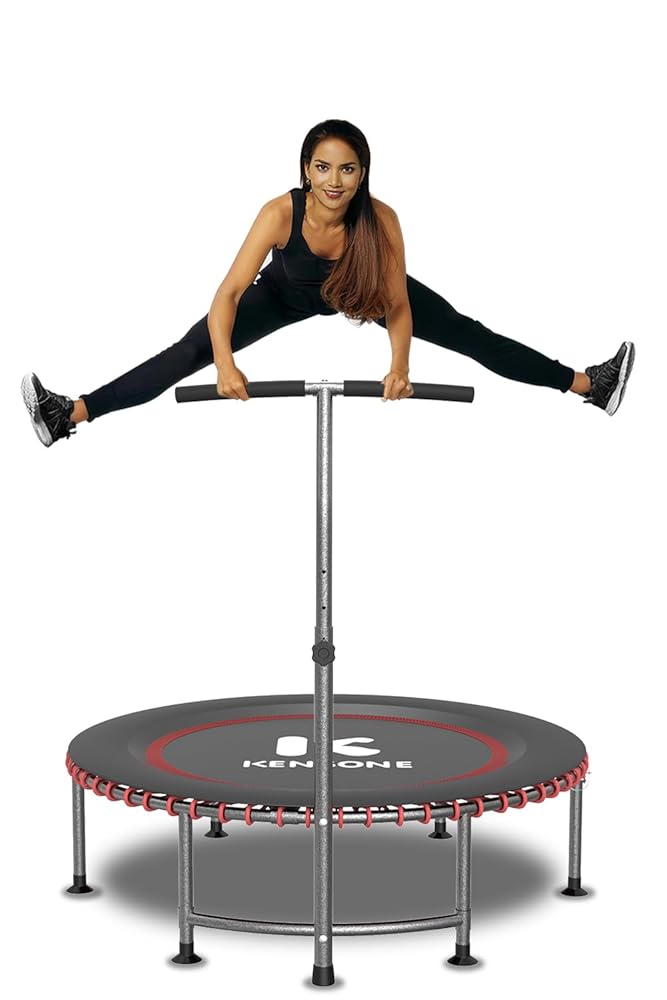 - 【ADJUSTABLE HANDRAIL】The height of the handle bar is ranged from 41” to 49”, measuring from the jumping mat. It can meet the needs of people of different heights, like women, men and elders.