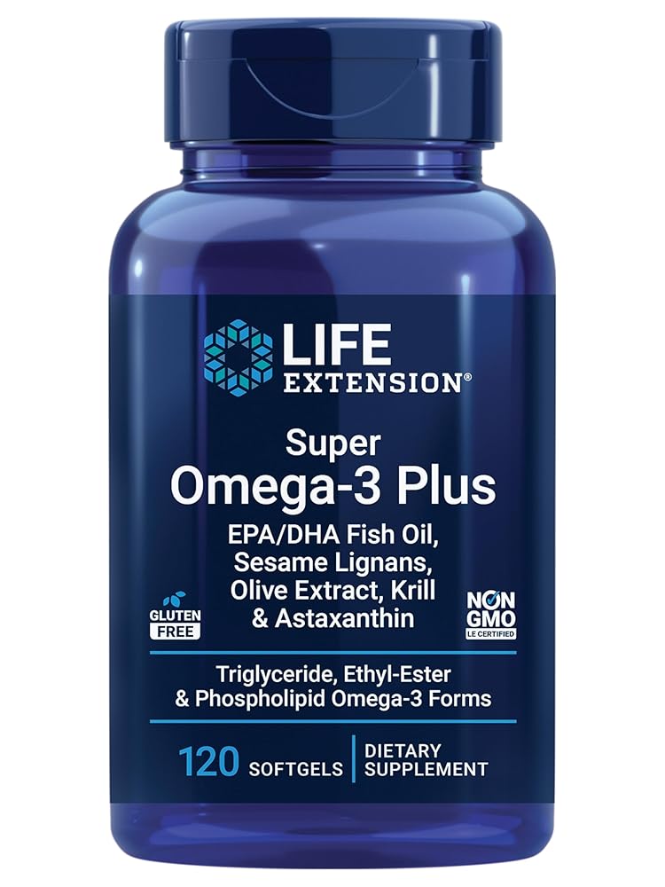 Life Extension Super Omega-3 (Fish Oil) Plus EPA/DHA With Sesame Lignans, Olive Extract, Krill and Astaxanthin (Packaging May Vary), Lemon, 120 Count