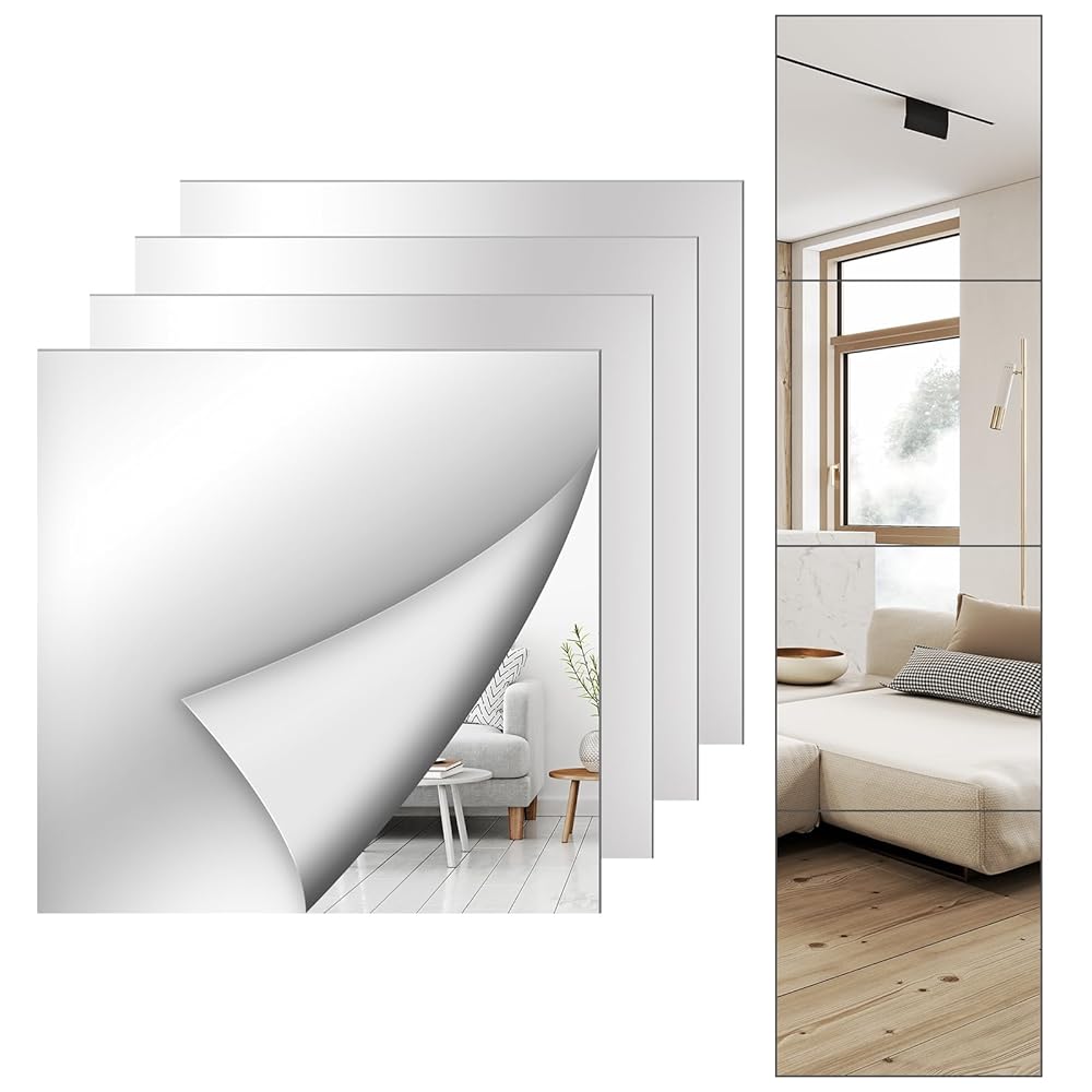 10 reviews for Mirror Wall Full Length,12X12 Inch Unbreakable Mirror Tiles for Bedroom Home Gym Door, Acrylic Squares Mirror Full Body Shatterproof Mirror Stickers for Walls,Mirror Sheets (4pcs)